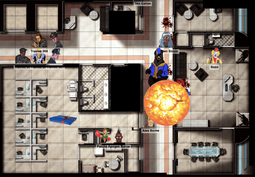 Between us and them, we get a respawn. This hostage negotiation sim isn’t going to plan. Blocking Alex’s shot at the cops is a giant bear. She shoots. Questions can come later.