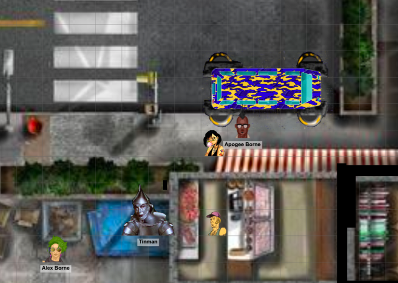 I’m not giving much of an update this week. We’ve been playing through the Jumpstart, so I don’t want to spoiler the campaign. The visual wizardry of our GM using Roll20 and the blowback of our street-level incompetence has been fun to share. But this session came straight out of the book. You’re going to have to caption competition this one yourself.